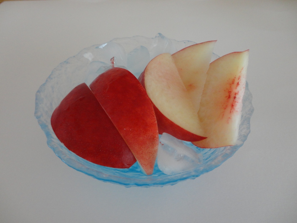 山梨県の故反田喜雄氏が、白桃とネクタリンの自然交雑実生を育成した品種です。果肉は白色で種の周囲がわずかに放射状に着色して美しく、果汁も十分にあります。
