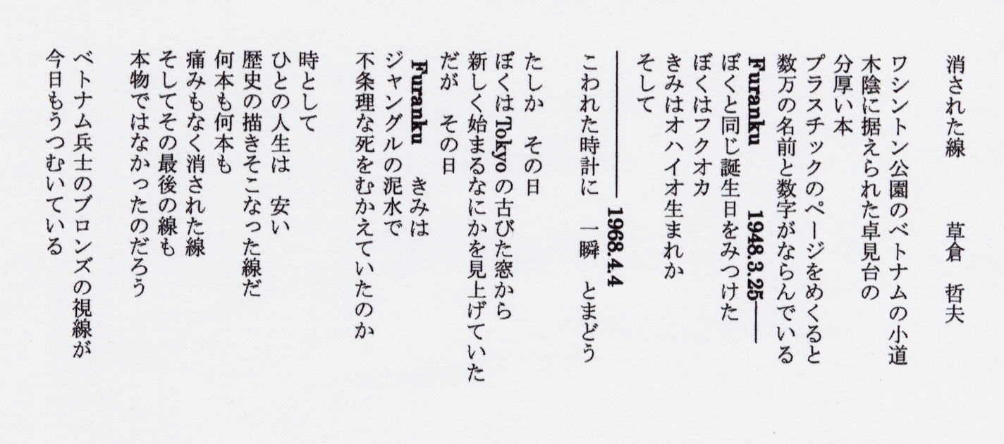 ワシントン公園のベトナムの小道にあったベトナム戦争犠牲者の名簿