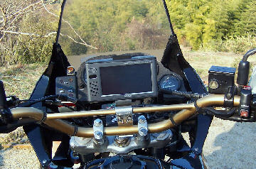 | ナビ SANYO miniゴリラ バイク用ではないのでいつまで保つかは??? 当然防水ではなく雨が降り出せば外してビニール袋へ収納 |