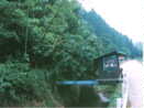 ![]() 轟集落への入口 | 轟集落入口にある案内板と建物。 建物上部はかろうじて”日本石油”という文字が 読み取れます。もしかしたら店だったのかも 水色の看板は”穂積水中鍾乳洞”への案内図、 18kmといってもかなりの狭い道を18Kmです。 その上のは”木浦まで9Km” |