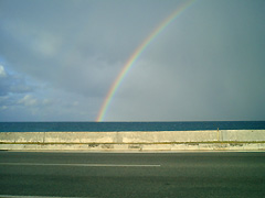 1月22日 名護 那覇空港へ向かう途中、この時期では珍しく海に 虹がかかっていました |