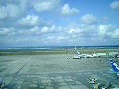 1月22日 那覇空港 今日は風が強いので海も荒れています 飛行機の出発も遅れました |