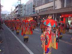 2月2日 ひんぷんがじゅまるを先頭に花笠琉装の舞踊が始まりました 商店街の空気も変わります |