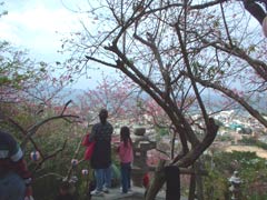 2月8日 名護岳の桜 桜祭りのときよりもさらに咲いています みんな海と森と桜の花を一望してウットリ |