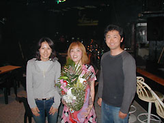 4月4日 名護 バードランド 今日はちえジョンの初ソロライブが ありました。ちなみにこの花は他の人が 持ってきたものです 7ヶ月ぶりに再会!またイベントしようね |