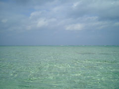 日の光で海がエメラルドグリーンに